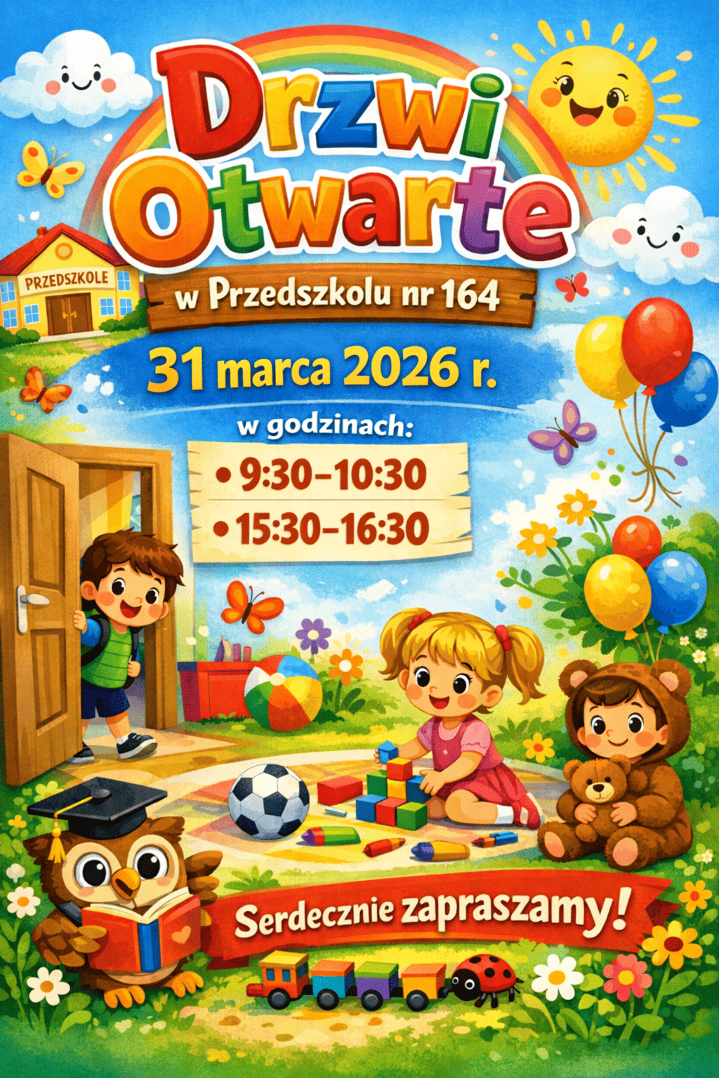 Dyrektor Przedszkola Miejskiego nr 164 informuje, że po nabór do przedszkola w roku szkolnym 2026/2027 będzie prowadzony na wolne miejsca w terminie: