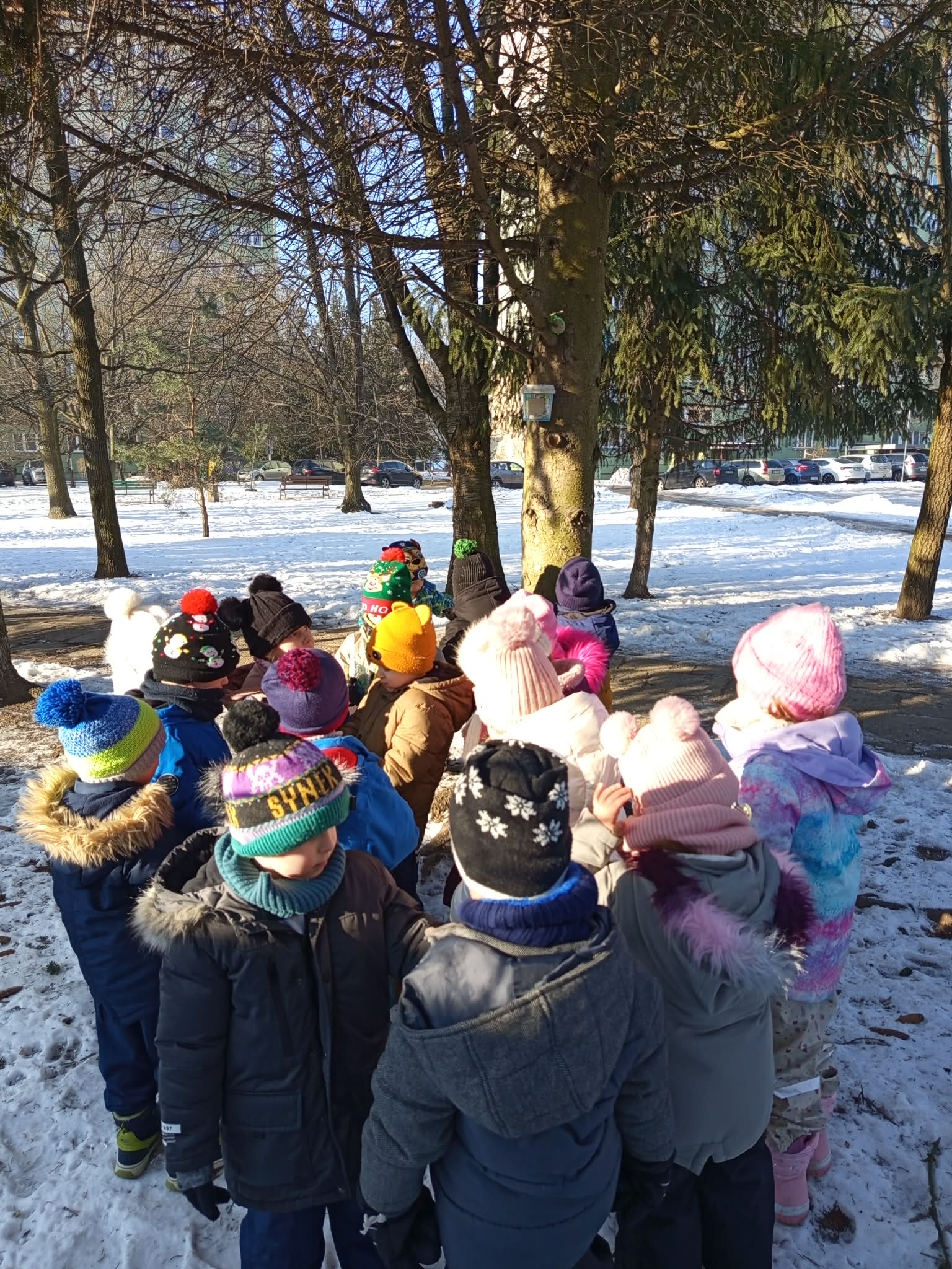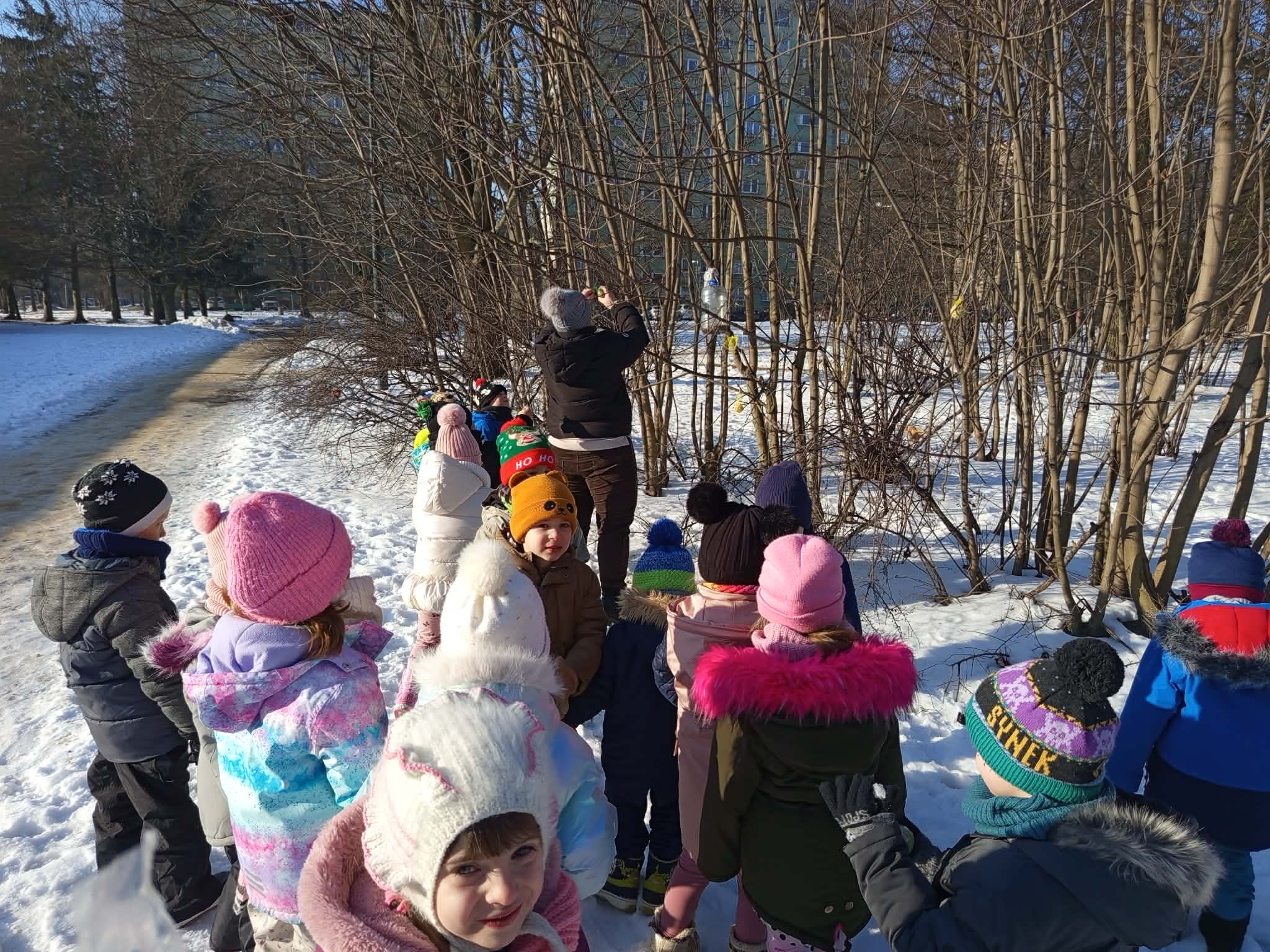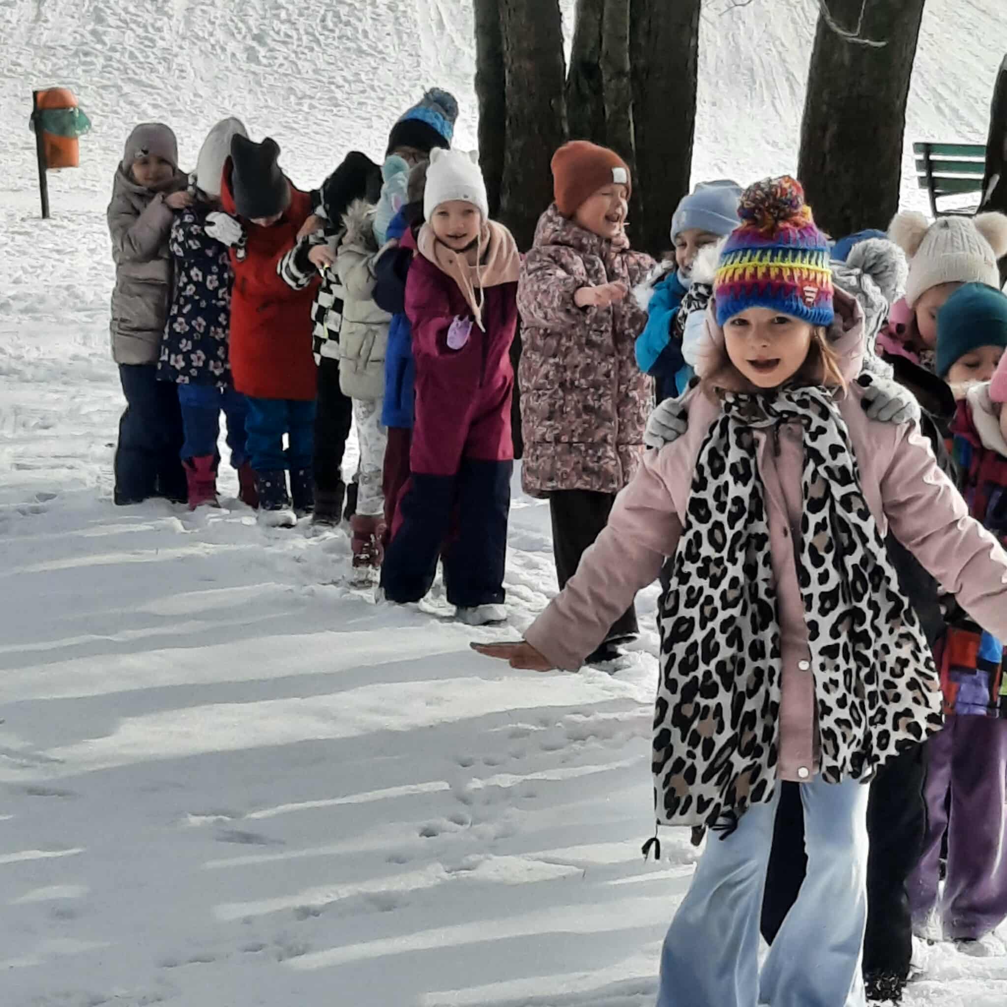 W tym roku zima przyszła do nas na dobre, korzystając z jej uroków przedszkolaki bawiły się na śniegu na polanie w parku. Dzieci oddały się zimowemu szaleństwu, lepiąc śnieżne budowle, rzucając śnieżkami, kopiąc tunele. Dzieci uwielbiają zabawy na świeżym powietrzu, była to dla nich to wspaniała rozrywka.